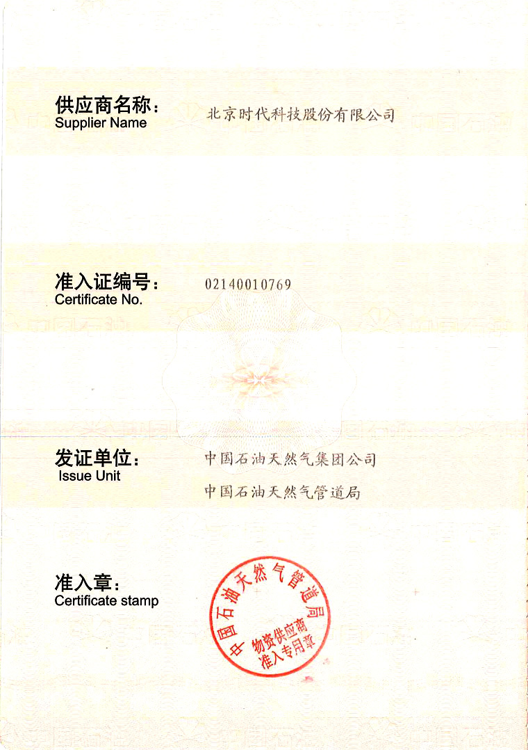 中國(guó)石油天然氣集團(tuán)公司物資供應(yīng)商準(zhǔn)入證