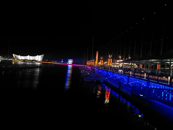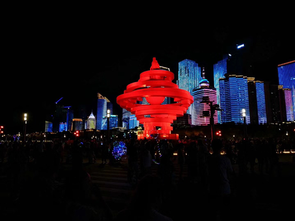 初秋的青島五四廣場(chǎng),風(fēng)景秀麗,氣候宜人,流光溢彩的燈光與蜿蜒曲折的海岸線相交呼應(yīng),讓游人在光影互動(dòng)中感受青島的浪漫。