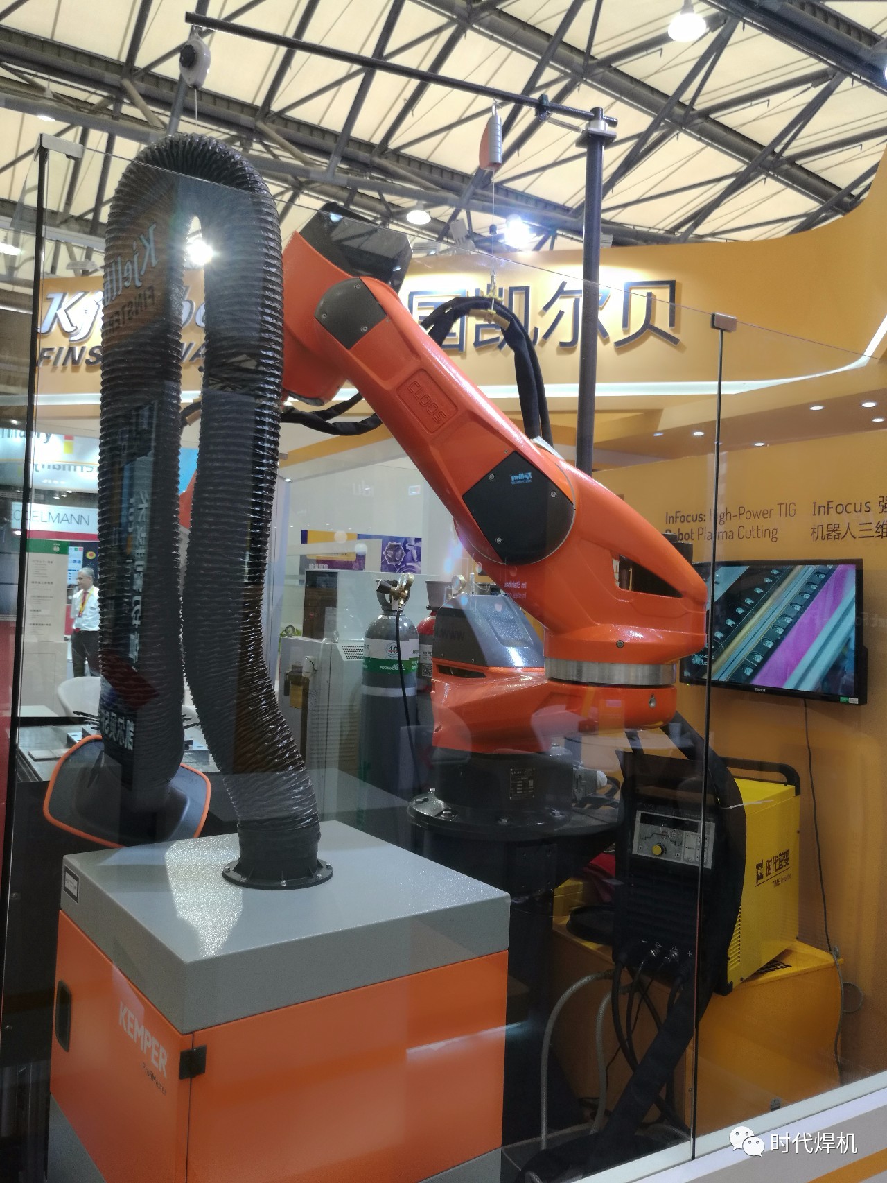 該系統由時代TDW5000直流氬弧焊機、德國凱爾貝InFocus焊槍和克魯斯機器人組成,德國凱爾貝InFocus專利技術,適合不銹鋼和鋁合金的對接焊縫,工件不需要預制坡口,單面焊雙面成型,焊接效率高,質量好,具有非常廣泛的應用前景。