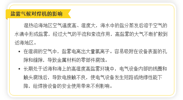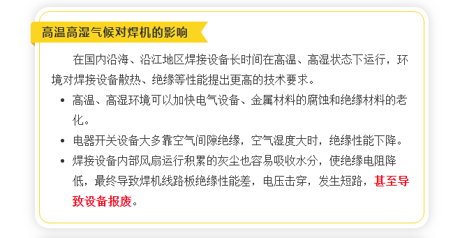 國內(nèi)國沿海、沿江地區(qū)的焊接設(shè)備長時(shí)間在高溫、高濕、鹽霧狀態(tài)下運(yùn)行,這對(duì)焊接設(shè)備散熱、絕緣等性能提出了更高的技術(shù)要求。為了滿足充分滿足客戶的需求,時(shí)代公司推出了耐鹽霧型NB-500(A160-500)半自動(dòng)氣保焊機(jī)。