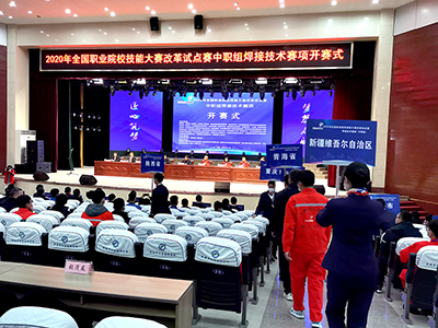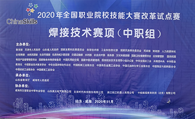 2020年11月24日,由中華人民共和國(guó)教育部、天津市人民政府、山東省人民政府等主辦的2020年全國(guó)職業(yè)院校技能大賽改革試點(diǎn)賽在歷史文化底蘊(yùn)深厚的千年古縣山東威海市文登區(qū)正式開賽。11月24日早上,大賽組委會(huì)在文登職業(yè)中等專業(yè)學(xué)校禮堂舉辦了盛大的開幕式。山東省教育廳領(lǐng)導(dǎo)及威海市領(lǐng)導(dǎo)到會(huì)致辭。本次大賽的實(shí)操賽場(chǎng)設(shè)在學(xué)校的4#實(shí)習(xí)車間內(nèi)。時(shí)代公司為大賽提供了全數(shù)字氣保焊機(jī)、全數(shù)字直流氬弧焊機(jī)、智能弧焊機(jī)人系統(tǒng)。比賽中選用時(shí)代設(shè)備參賽的選手達(dá)到85%以上。