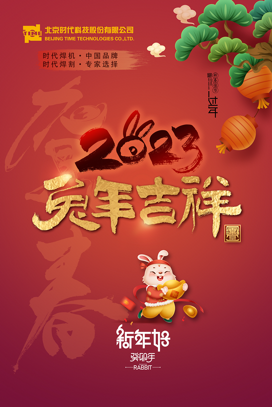 在新春佳節(jié)到來(lái)之際,全體時(shí)代人心懷感恩向所有時(shí)代焊機(jī)的新、老朋友致以最誠(chéng)摯的新年問(wèn)候!祝愿大家新春快樂(lè)!萬(wàn)事如意!身體健康!闔家歡樂(lè)!同時(shí)祝愿所有朋友在癸卯年(2023年)順風(fēng)順?biāo)?、步步登高、豪氣勃發(fā)、大展宏圖!