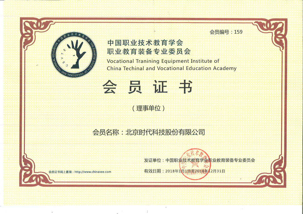 | 2018-01 | 中國(guó)職業(yè)技術(shù)教育學(xué)會(huì)職業(yè)教育裝備專業(yè)委員會(huì)會(huì)員證書(shū) | 中國(guó)職業(yè)技術(shù)教育學(xué)會(huì) |