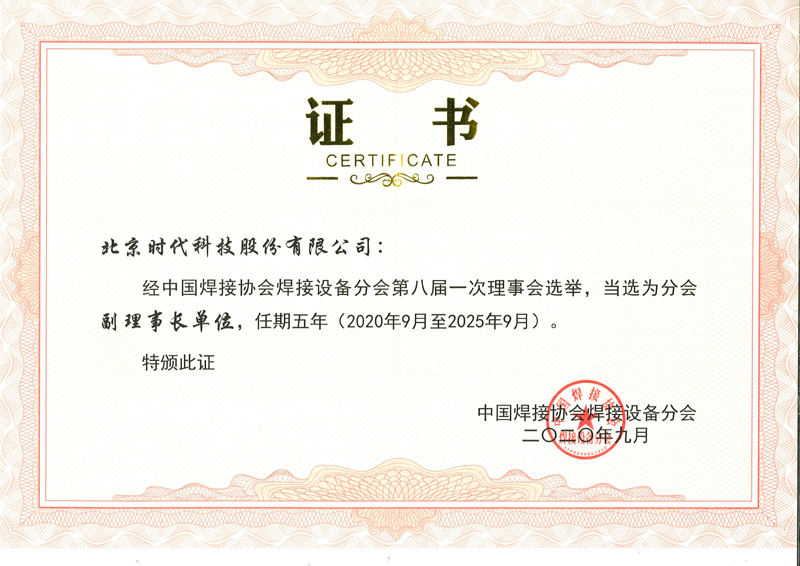 | 2020-09 | 中國(guó)焊接協(xié)會(huì)焊接設(shè)備分會(huì)副理事長(zhǎng)單位 | 中國(guó)焊接協(xié)會(huì) |