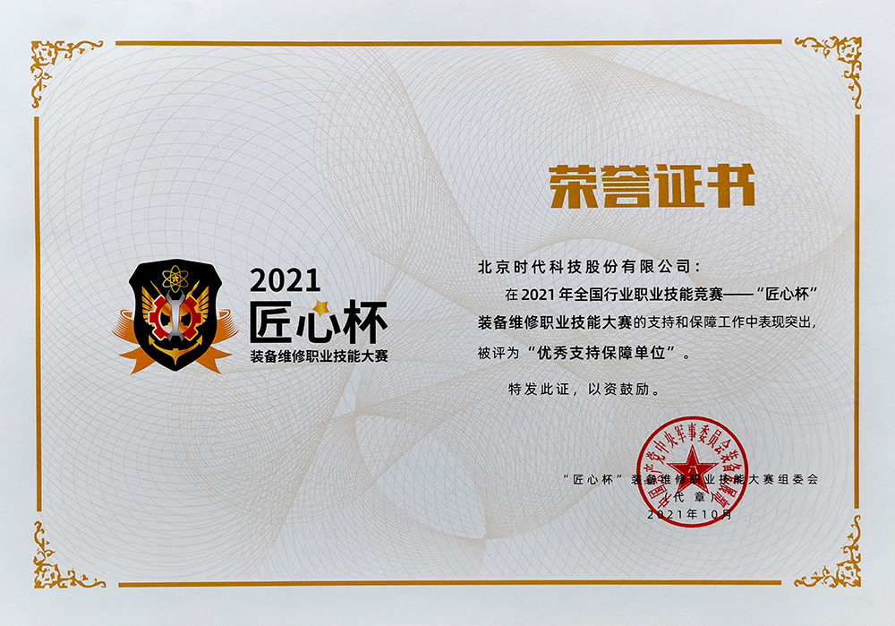 | 2021-12 | 2021年“匠心杯”裝備維修職業(yè)技能大賽證書(shū) | 中國(guó)共產(chǎn)黨中央軍事委員會(huì)裝備發(fā)展部 |