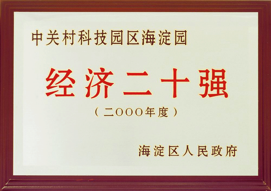 | 2002-04 | 中關(guān)村科技園區(qū) 2000 年度經(jīng)濟(jì)二十強(qiáng)企業(yè) | 海淀區(qū)人民政府 |