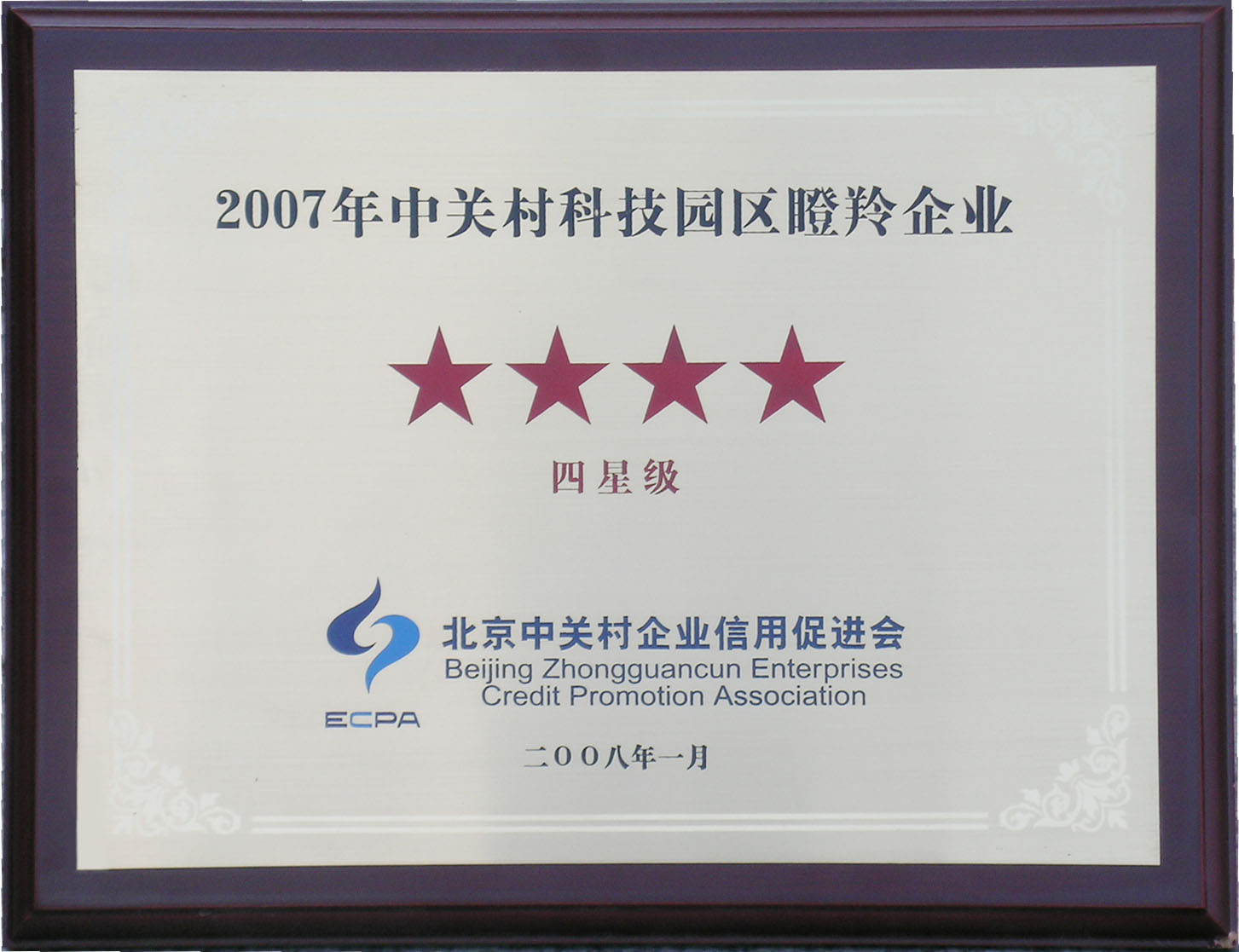 | 2008-07 | 2007年中關(guān)村科技園區(qū)瞪羚企業(yè) | 中關(guān)村企業(yè)信用促進(jìn)會(huì) |