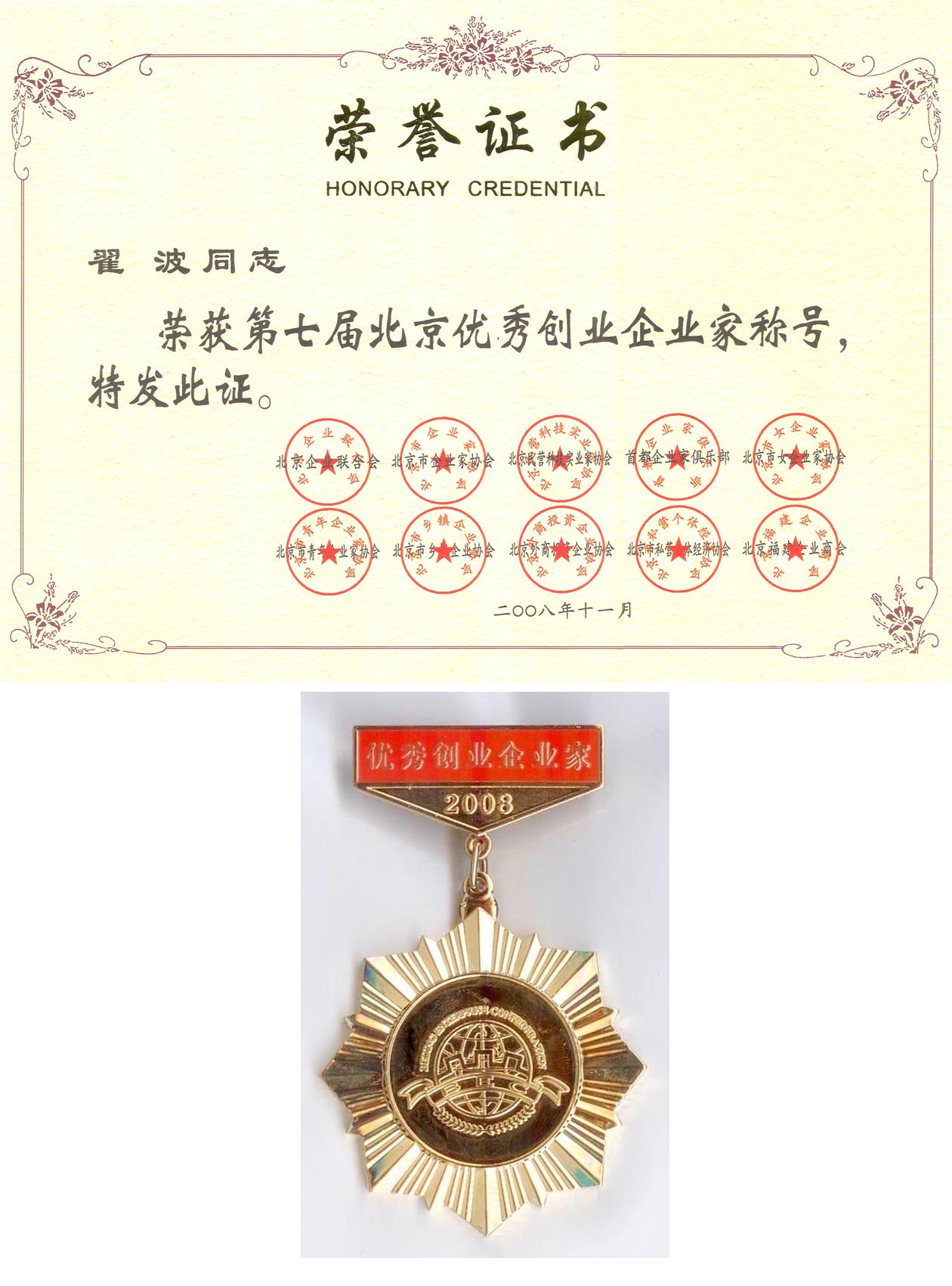 | 2008-11 | 第七屆北京優(yōu)秀創(chuàng)業(yè)企業(yè)家 | 北京企業(yè)聯(lián)合會(huì)、北京企業(yè)家協(xié)會(huì) |