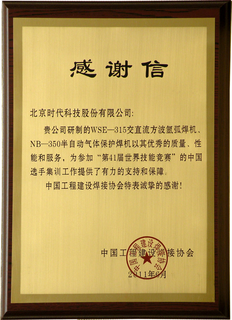 | 2011-06 | 參與世界技能大賽感謝信 | 中國(guó)工程建設(shè)焊接協(xié)會(huì) |