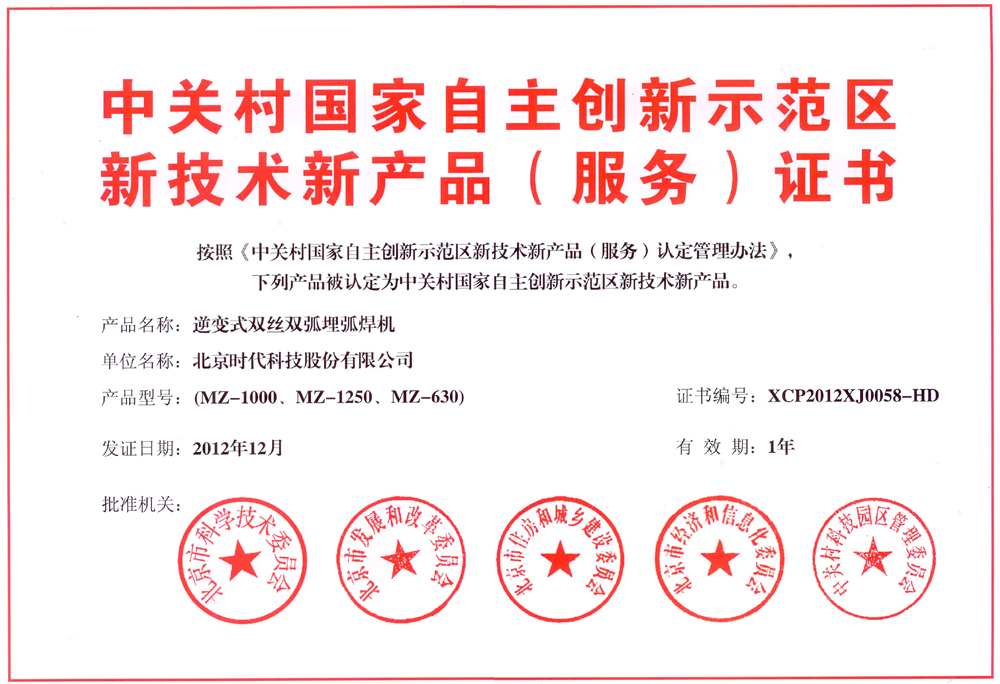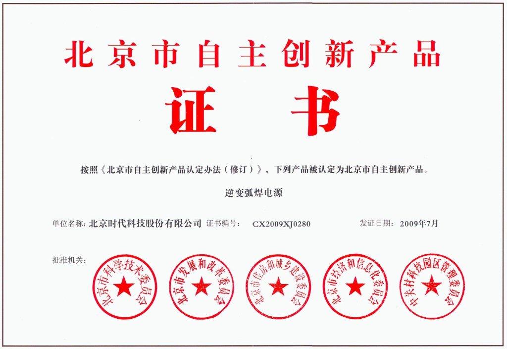 | 2009-07 | 北京市自主創(chuàng)新產(chǎn)品(逆變弧焊電源) | 北京市科學(xué)技術(shù)委員會(huì) |