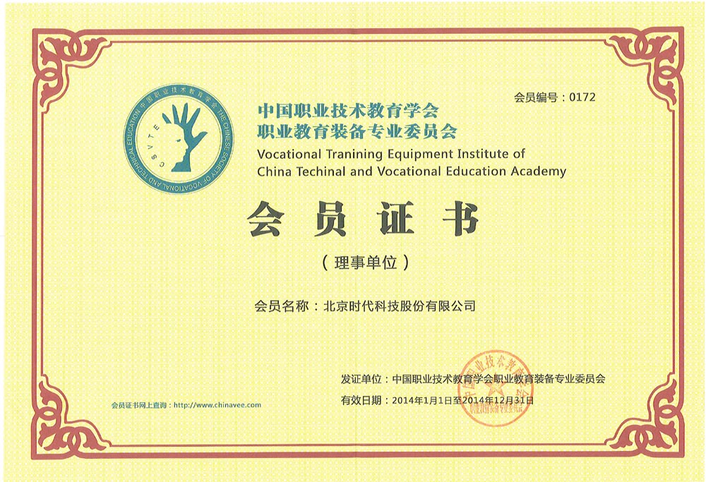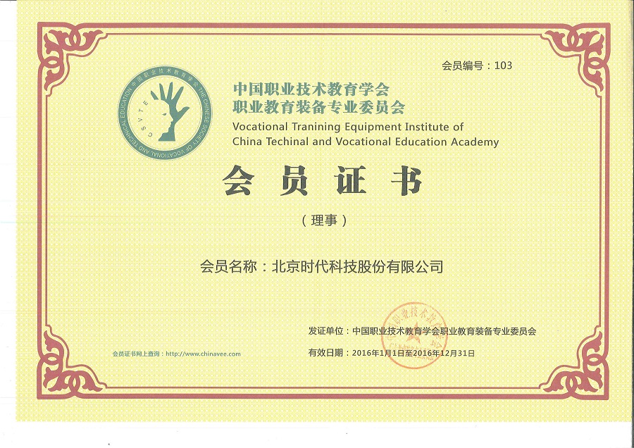 | 2016-03 | 中國(guó)職業(yè)技術(shù)教育學(xué)會(huì)職業(yè)教育裝備專業(yè)委員會(huì)會(huì)員證書(shū) | 中國(guó)職業(yè)技術(shù)教育學(xué)會(huì)職業(yè)教育裝備專業(yè)委員會(huì) |
