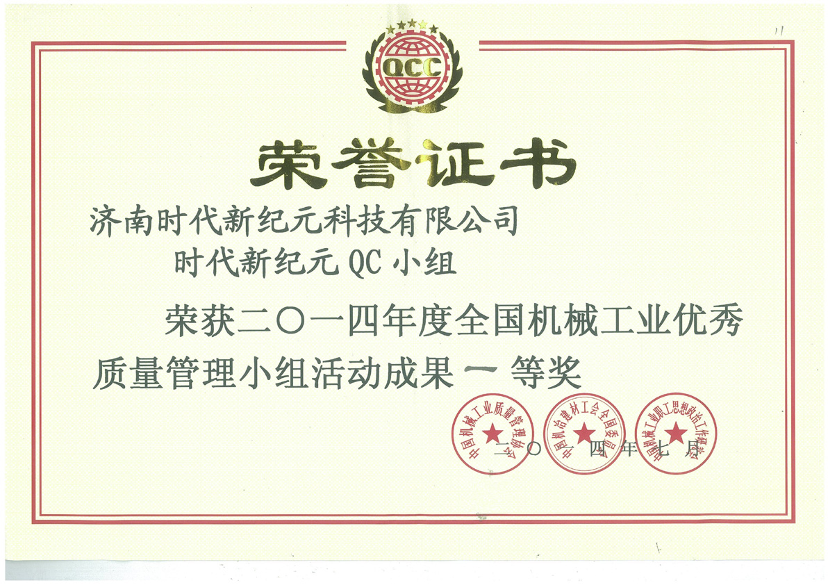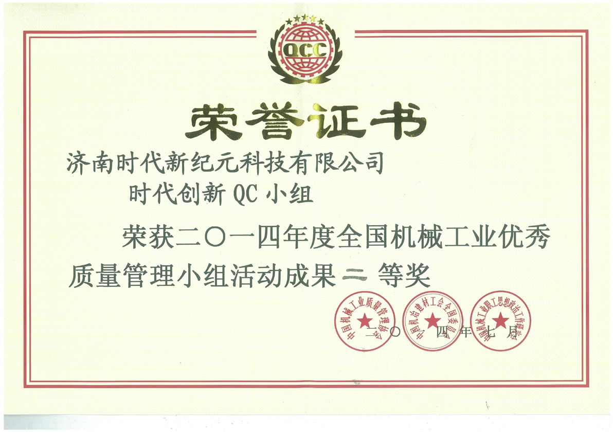 | 2014-08 | 2014年全國(guó)機(jī)械工業(yè)優(yōu)秀質(zhì)量管理小組獎(jiǎng) 二等獎(jiǎng) | 中國(guó)機(jī)械工業(yè)質(zhì)量管理協(xié)會(huì) |