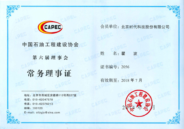 | 2014-08 | 中國(guó)石油工程建設(shè)協(xié)會(huì)常務(wù)理事證 | 中國(guó)石油工程建設(shè)協(xié)會(huì) |