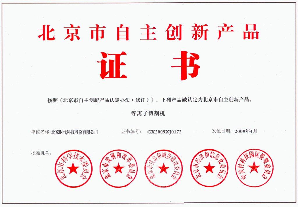 | 2009-04 | 北京市自主創(chuàng)新產(chǎn)品(等離子切割機(jī)) | 北京市科學(xué)技術(shù)委員會(huì) |