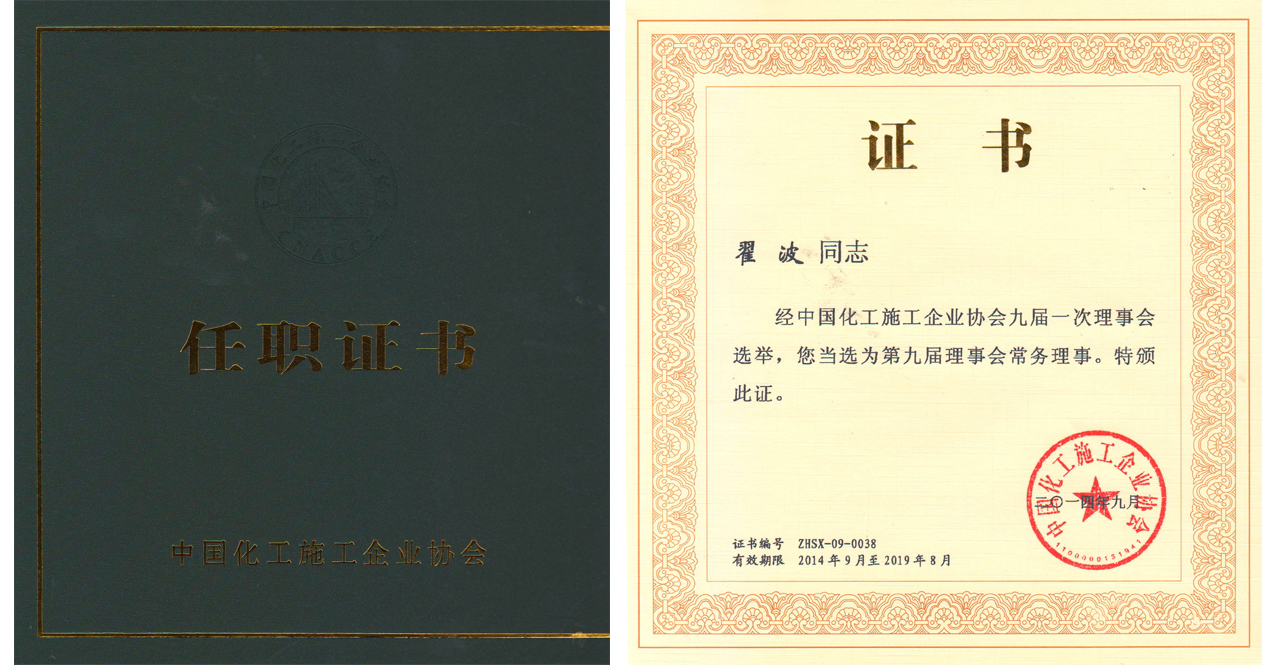 | 2014-09 | 中國(guó)化工施工企業(yè)協(xié)會(huì)常務(wù)理事 | 中國(guó)化工施工企業(yè)協(xié)會(huì) |