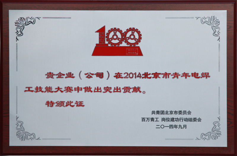 | 2014-12 | 北京市青年電焊工技能大賽 突出貢獻(xiàn)獎(jiǎng) | 共青團(tuán)北京市委員會(huì) |