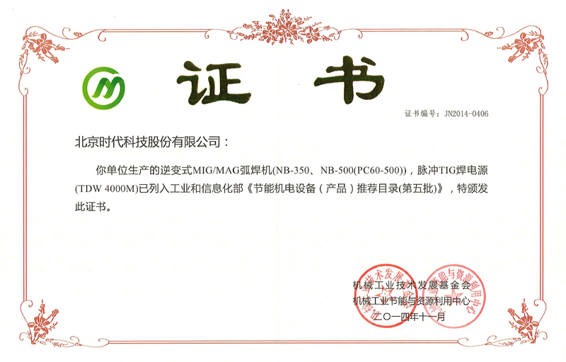 | 2015-01 | 工業(yè)和信息部《節(jié)能機(jī)電設(shè)備推薦目錄》證書(shū) | 機(jī)械工業(yè)技術(shù)發(fā)展基金會(huì) |