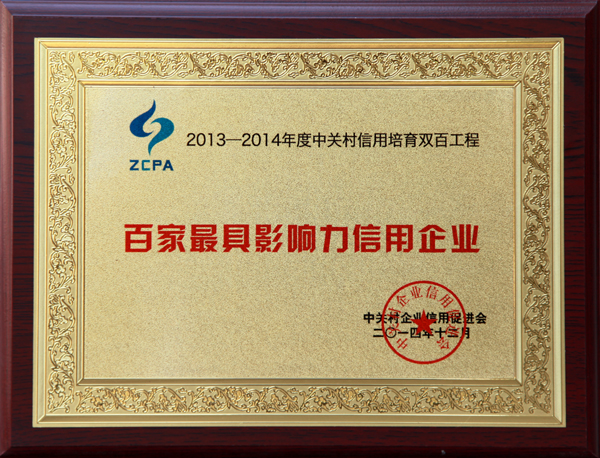 | 2014-12 | 百家最具影響力信用企業(yè) | 中關(guān)村企業(yè)信用促進(jìn)會(huì) |