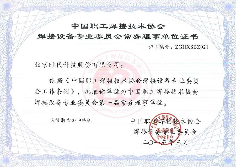 | 2016-04 | 中國(guó)職工焊接技術(shù)協(xié)會(huì) 焊接設(shè)備專業(yè)委員會(huì)常務(wù)理事單位證書(shū) | 中國(guó)職工焊接技術(shù)協(xié)會(huì) 焊接設(shè)備專業(yè)委員會(huì) |